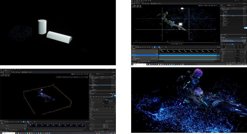 This week, I focused on creating the climax of the film. In this scene, the protagonist and her other self comfort each other amidst a field of particles. She embraces her vulnerability, imperfection, and comes to terms with her past. This moment marks the emotional peak of the story, visually represented through dynamic particle effects.
